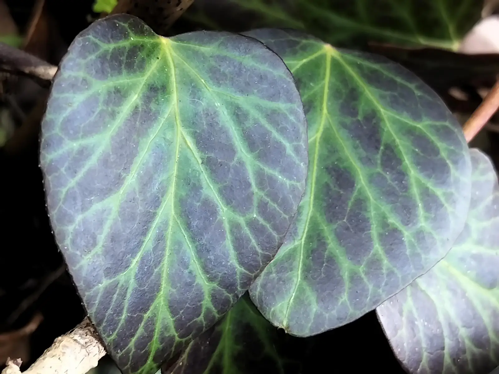 Caucasian ivy, Hedera colchica ‘Dendroides’, The leaves are 5 to 10 cm long, lobeless, dark green, shiny and may be rounded or pointed. The margins are often curved underneath.