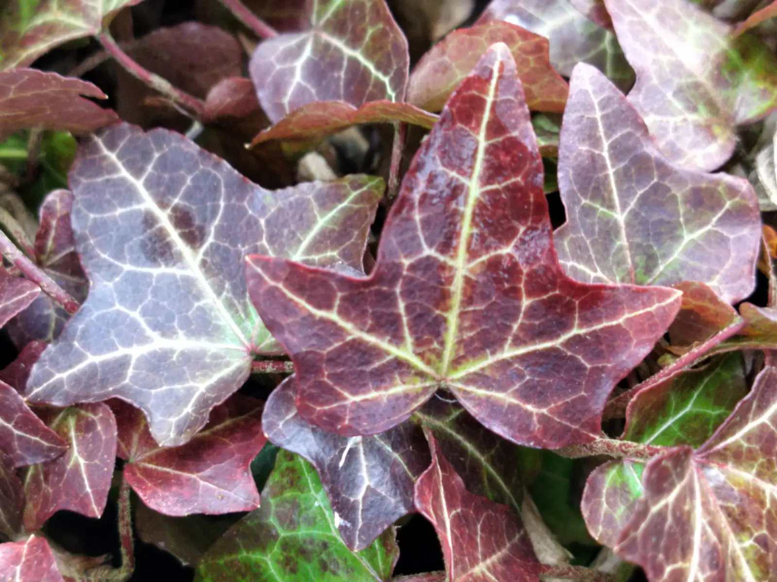 Ornamental ivy, Hedera helix ‘Balkon’, is a selection of the common ivy, with smaller, closely-spaced, glossy green leaves.