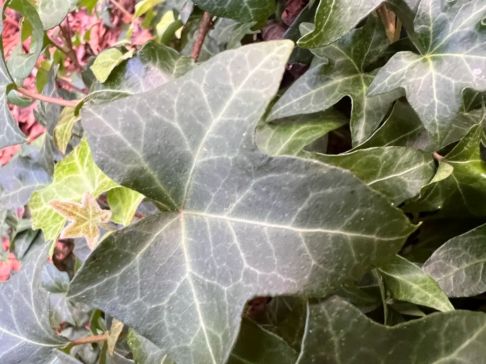 Le lierre d’ornement, Hedera helix ‘Frysto’, présente des feuilles palmées et ondulées parcourues par un joli veinage.